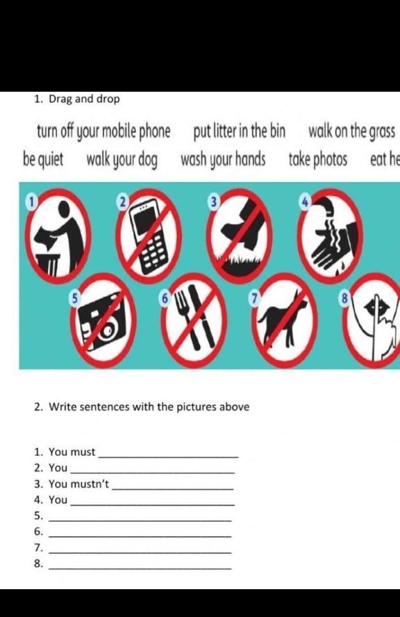 5/you mustn't (вместо mustn't можно писать must not, мне просто так удобнее) take photos