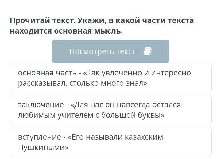 Прочитай текст. Укажи, в какой части текста находится основная мысль. основная часть