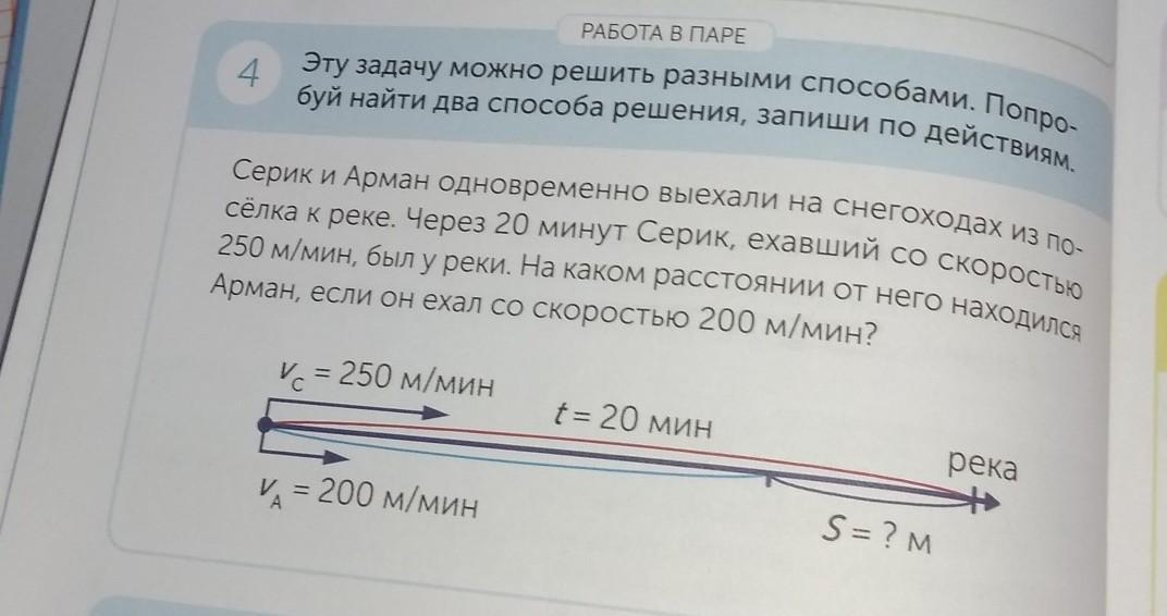1) 250-200-50 (м/мин) 2) 50х20-1000 (м) Ответ:1000 м росстояние Армана с Сериком