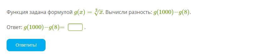 функция задана формулой g(x) = 3√x вычисли разность g(1000) - g(8)