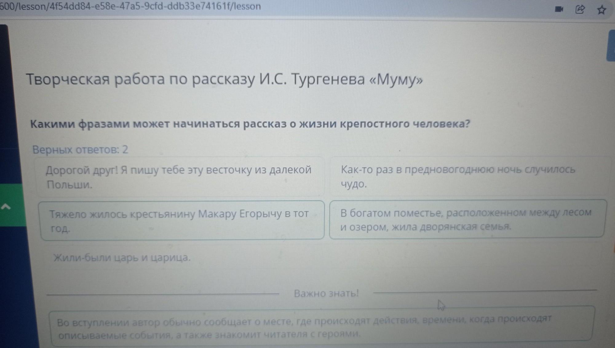 Какими фразами может начинаться рассказ о жизни крепостного человека? Верных ответов: 2