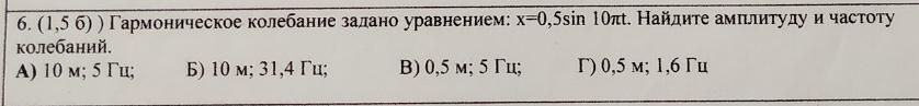 Частота = w/2п = 10п/2п = 5 Гц