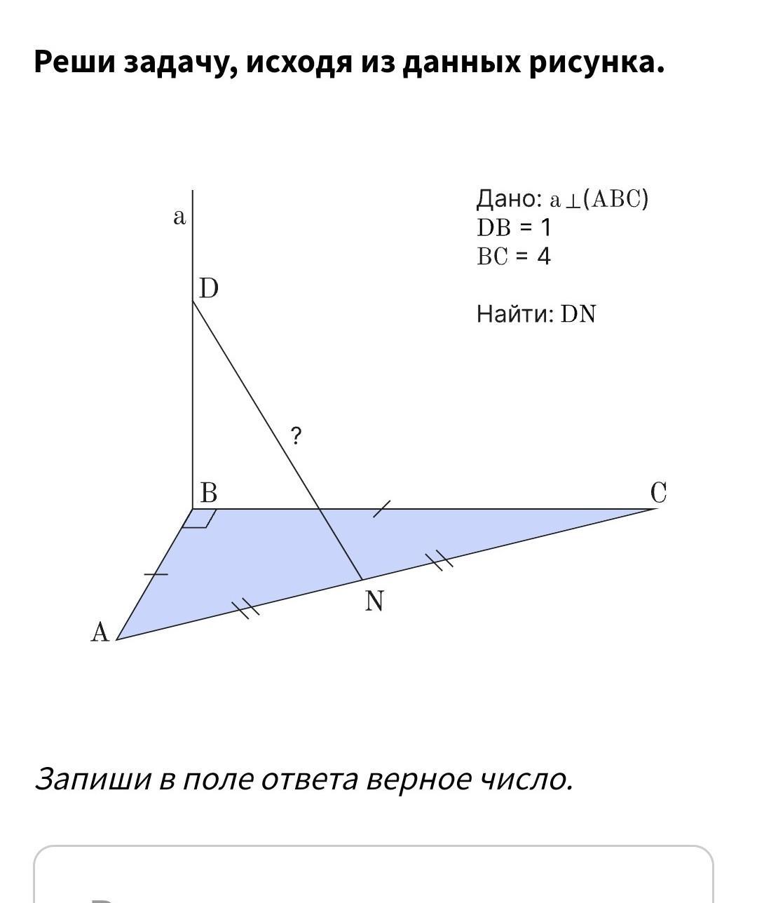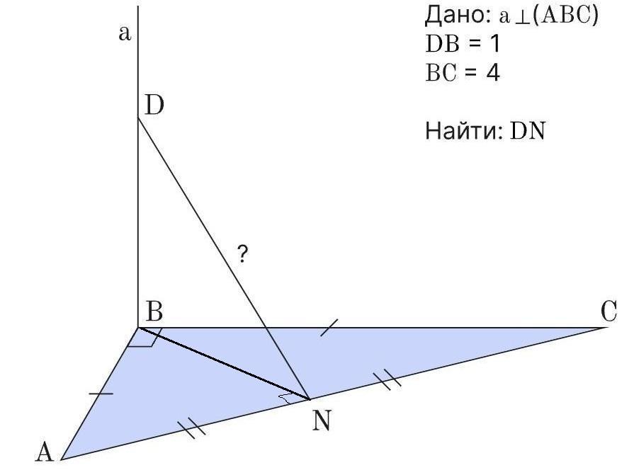 a⊥(ABC), значит DB⊥BN. Тогда в прямоугольном △DBN DN=√(DB²+BN²)=√(1+8)=3