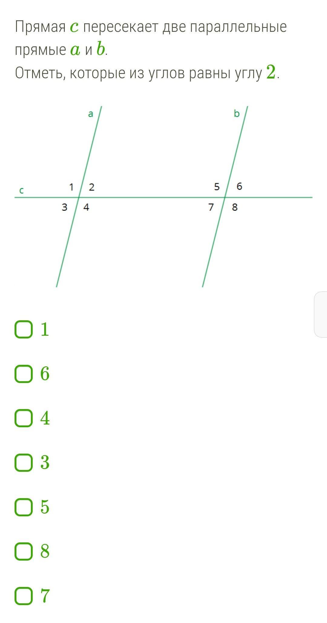 Ну параллельны углу 2 это 3, 7, 6 вроде так