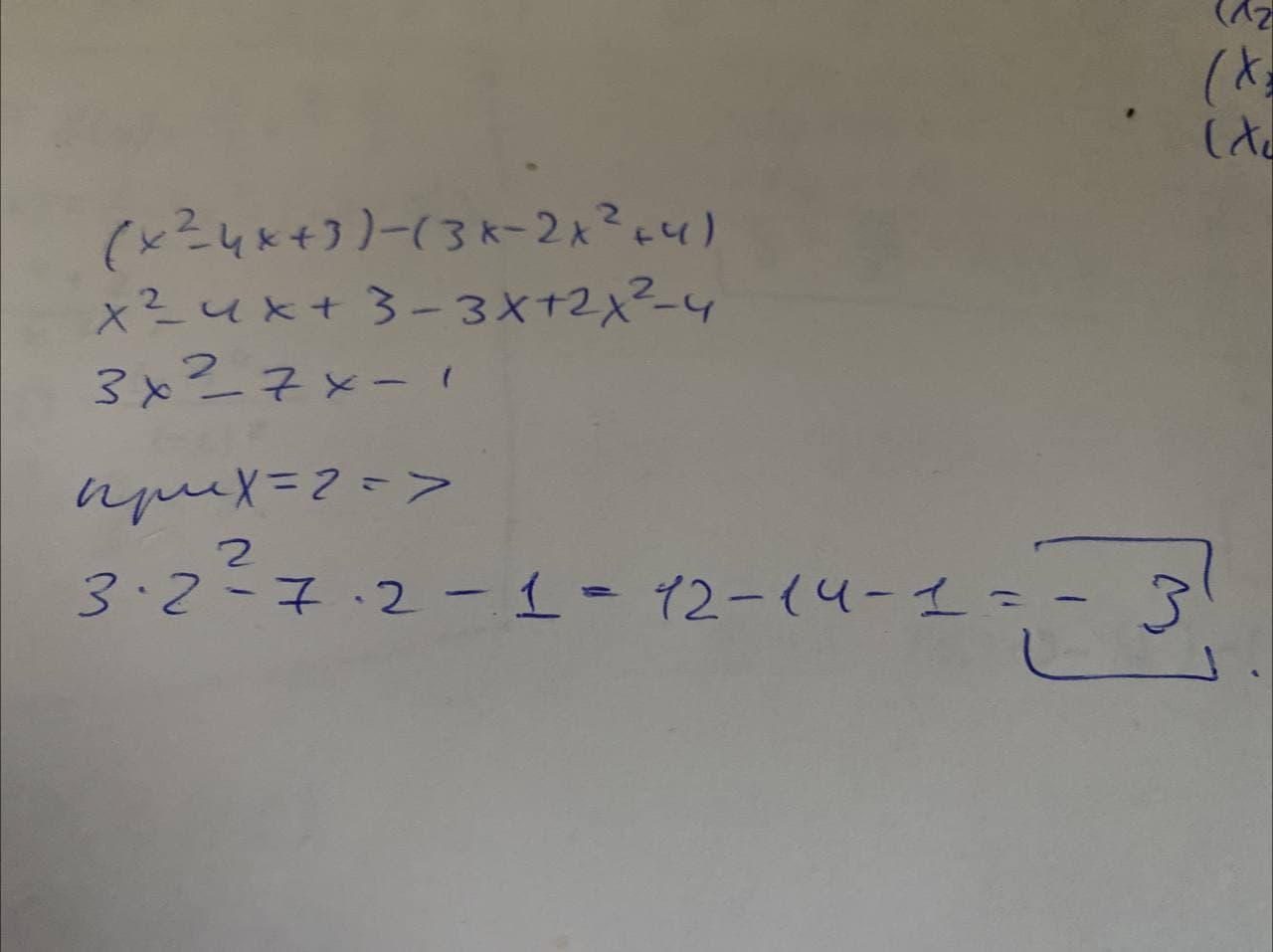 x^2-4x+3-3x+2x^2-4=3x^2-7x-1=3•4-7•2-1=12-14-1=-3
