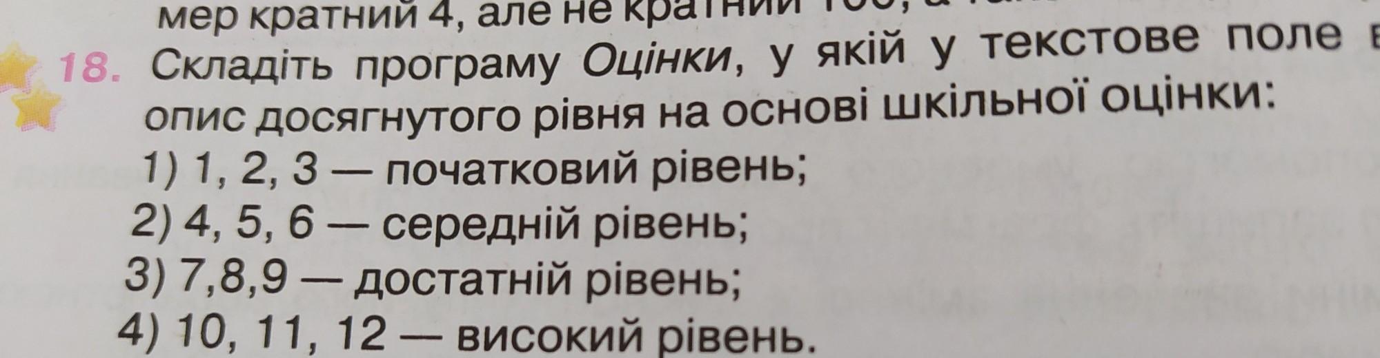 Пользователь вводит оценку,ему выводится уровень его знаний,всё работает