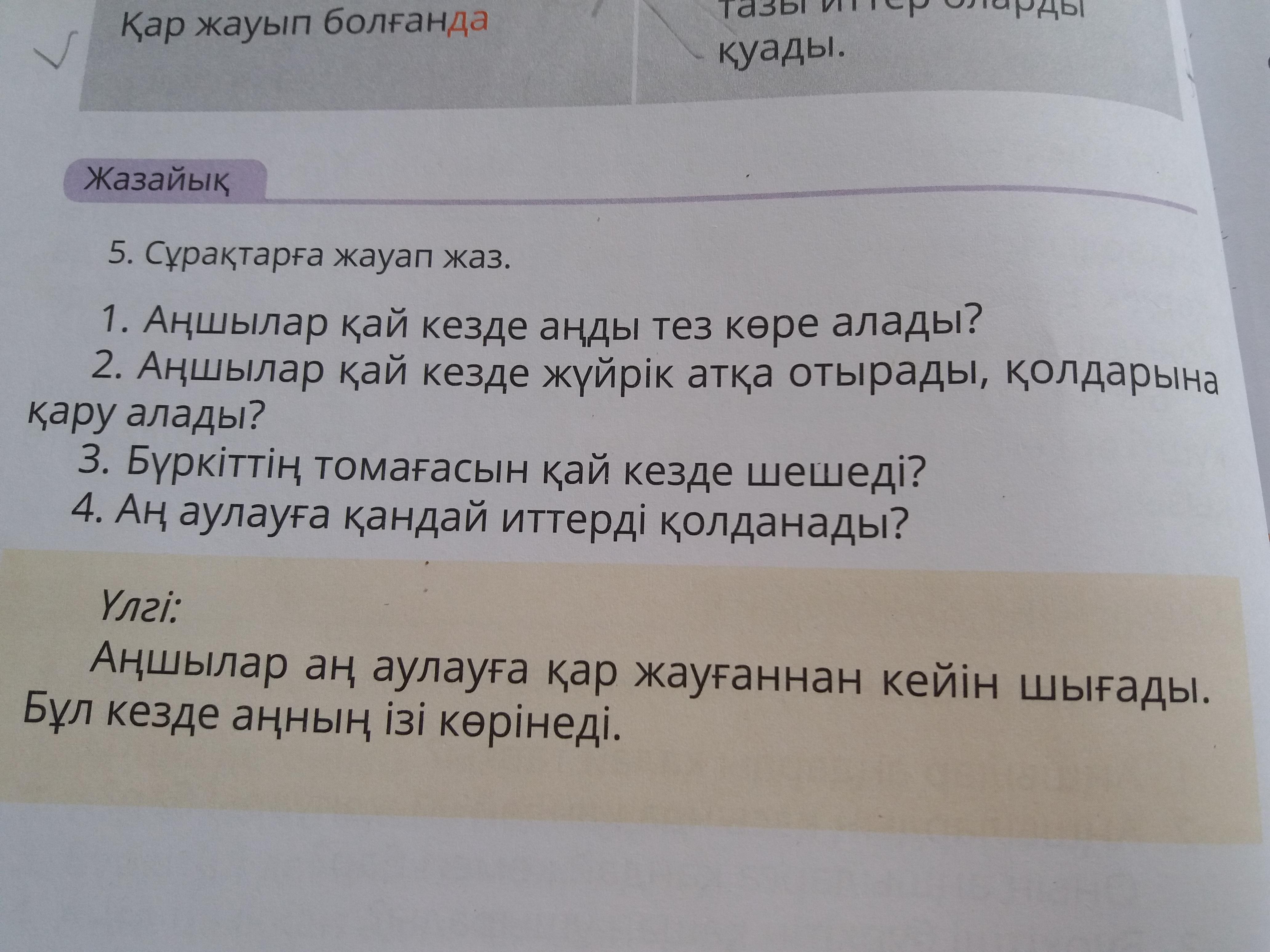 2.Аңшылар аң аулауға барғанда жүйрік атқа отырып қолына мылтық алады.