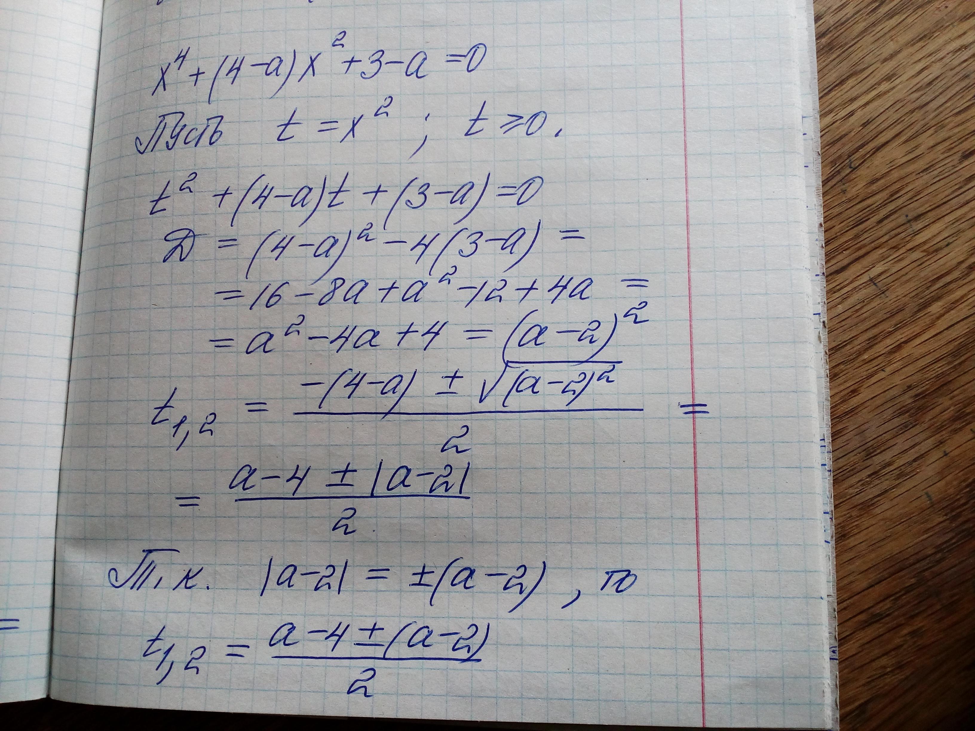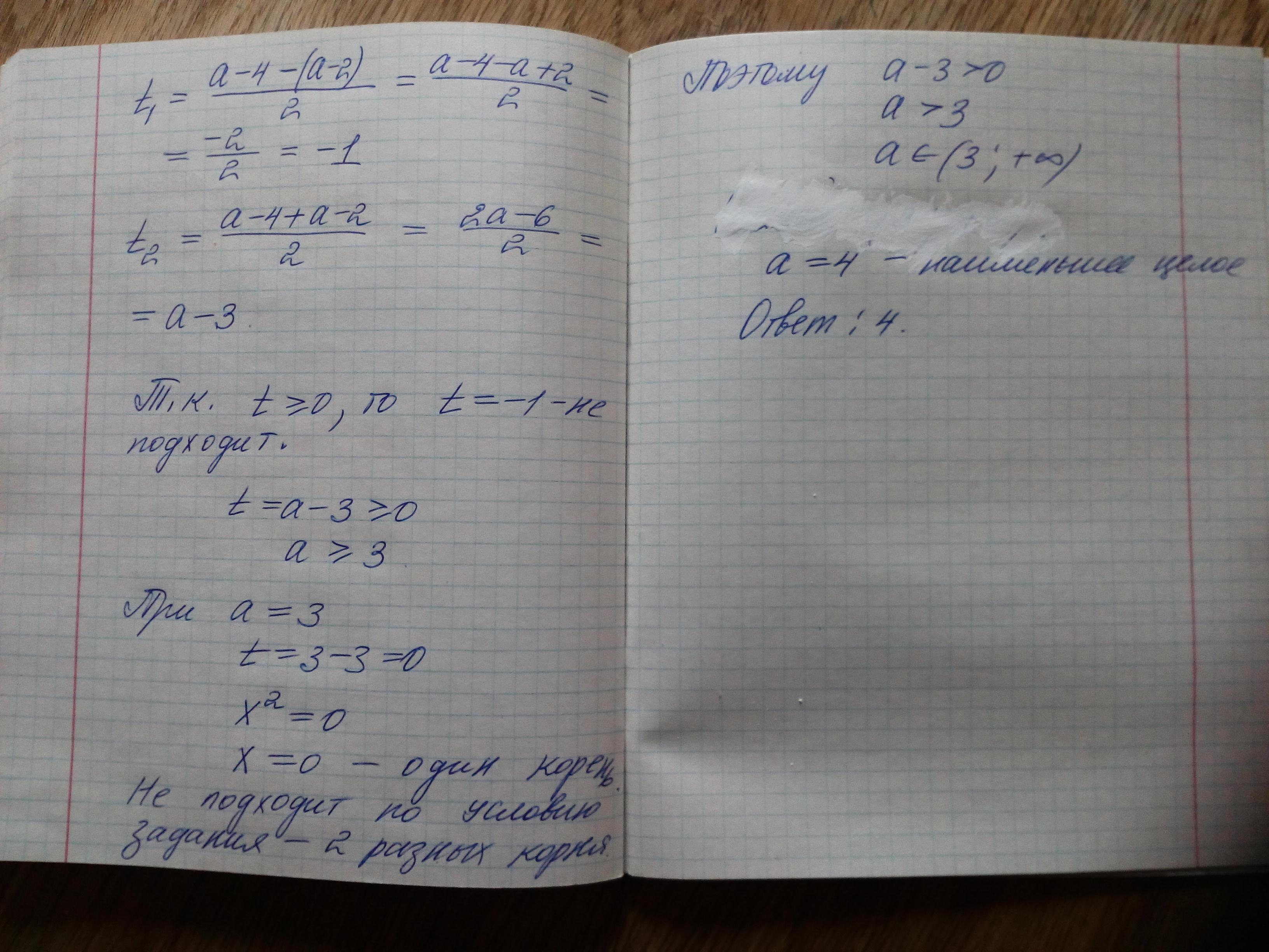 Знайдіть найменше ціле значення а , при якому рівняння х⁴+ (4-а) х² +3– a=0 має 2 різних дійсних розв'язки.