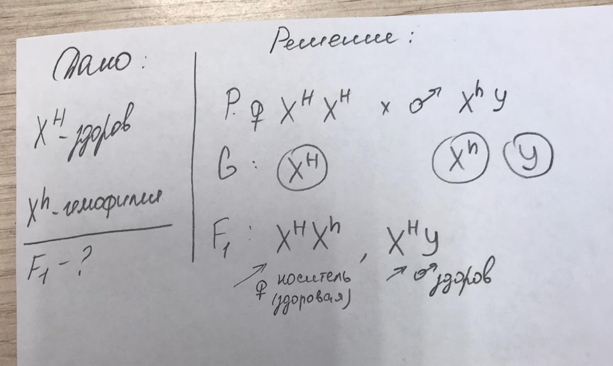У людини гемофілія зумовлена рецесивною алеллю, локалізованою в Х-хромосомі. Яка ймовірність народжен- ня хворих дітей, якщо батько хворий, а мати здорова і не має в родині хворих родичів на це захворювання?