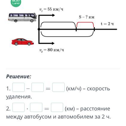 (км) - расстояние между автобусом и автомобилей за 2 ч. Срочно