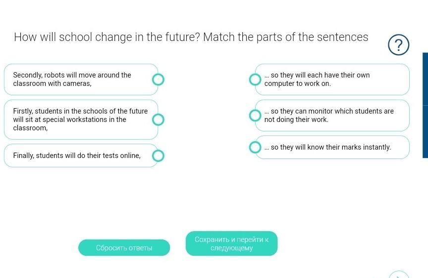 Firstly, students in the schools of the future will sit at special workstations in the classroom, so they will each have their own computer to work on.