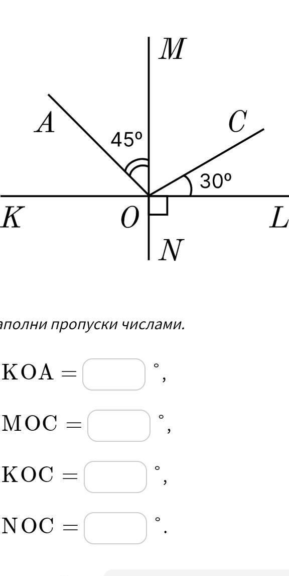 KOC=180-30=150 градусов