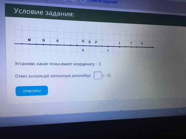 Пошаговое объяснение: сначала находишь сколько точек между 0 и 1, их там 4, и теперь налево отсчитываешь 4 точки выйдет ответ К