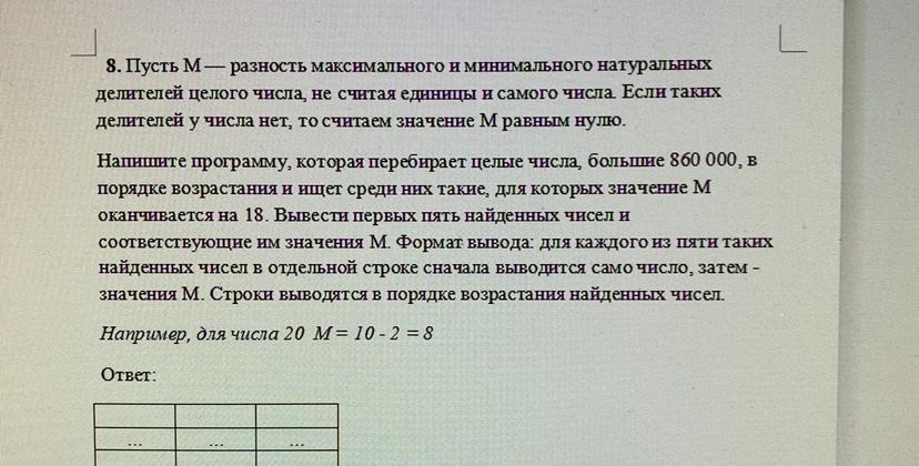 Напишите программу, которая перебирает целые числа, большие 860 000, в