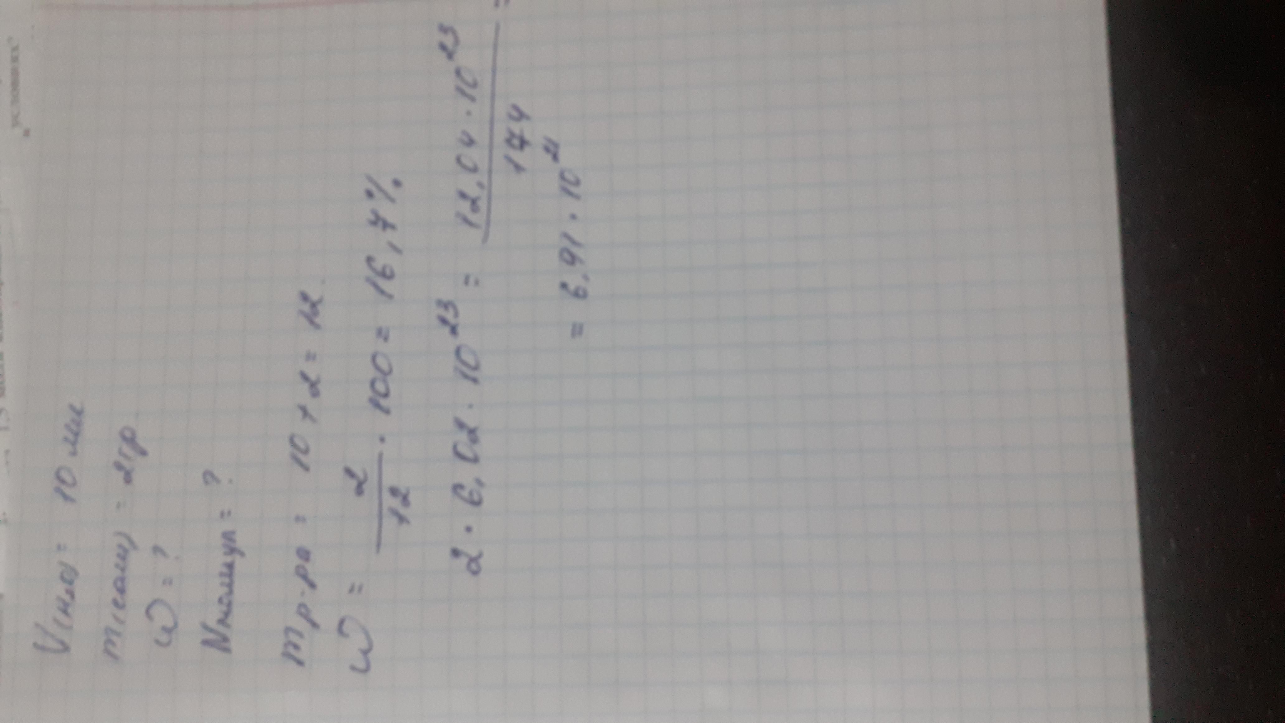 Расчитать массовую долю и число молекул сульфата калия (К2SO4) в растворе полученном при растворении в 10 мл воды, 2 г соли