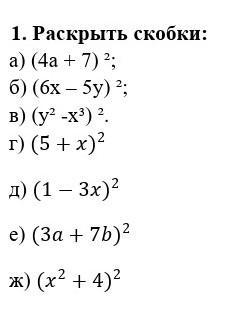 а) (4а+7)² = (4a)^2+2×4a×7+7^2=16a^2+56a+49