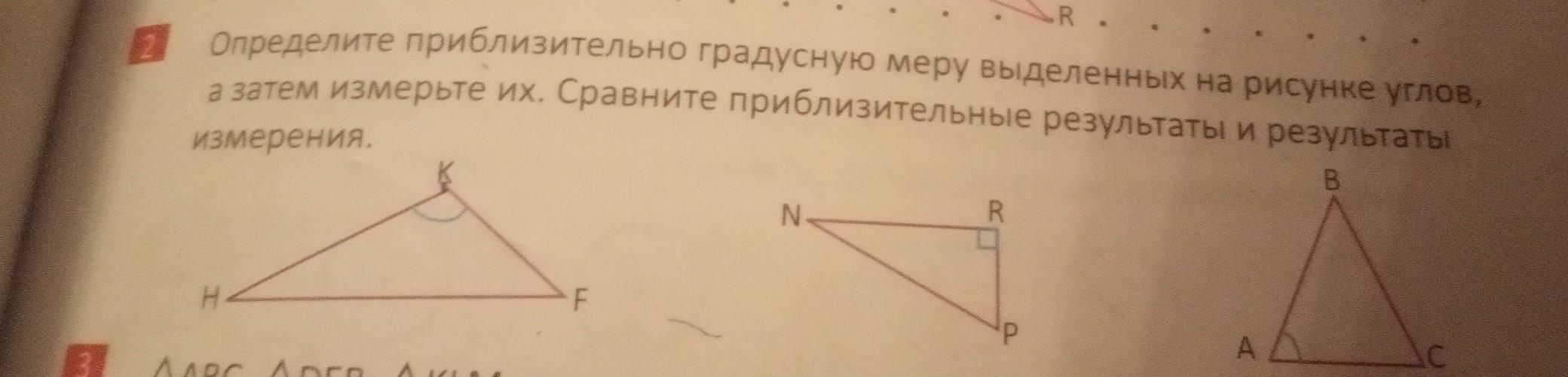 Определите приблизительно градусную меру выделенных на рисунке углов Измерьте их Сравните пригласительное результаты результаты измерения