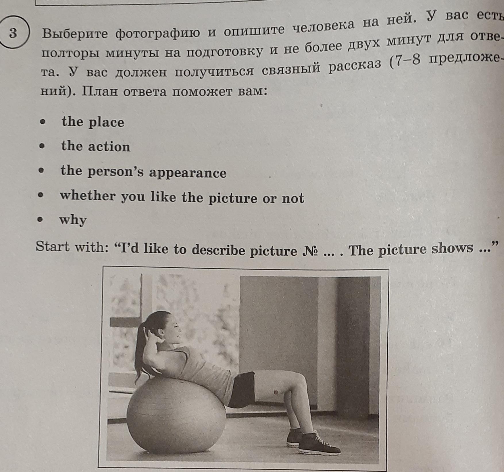 The picture shows a woman at the gym. She's doing some exercise with a ball. I like the picture because it shows that some people have healthy lifestyle.