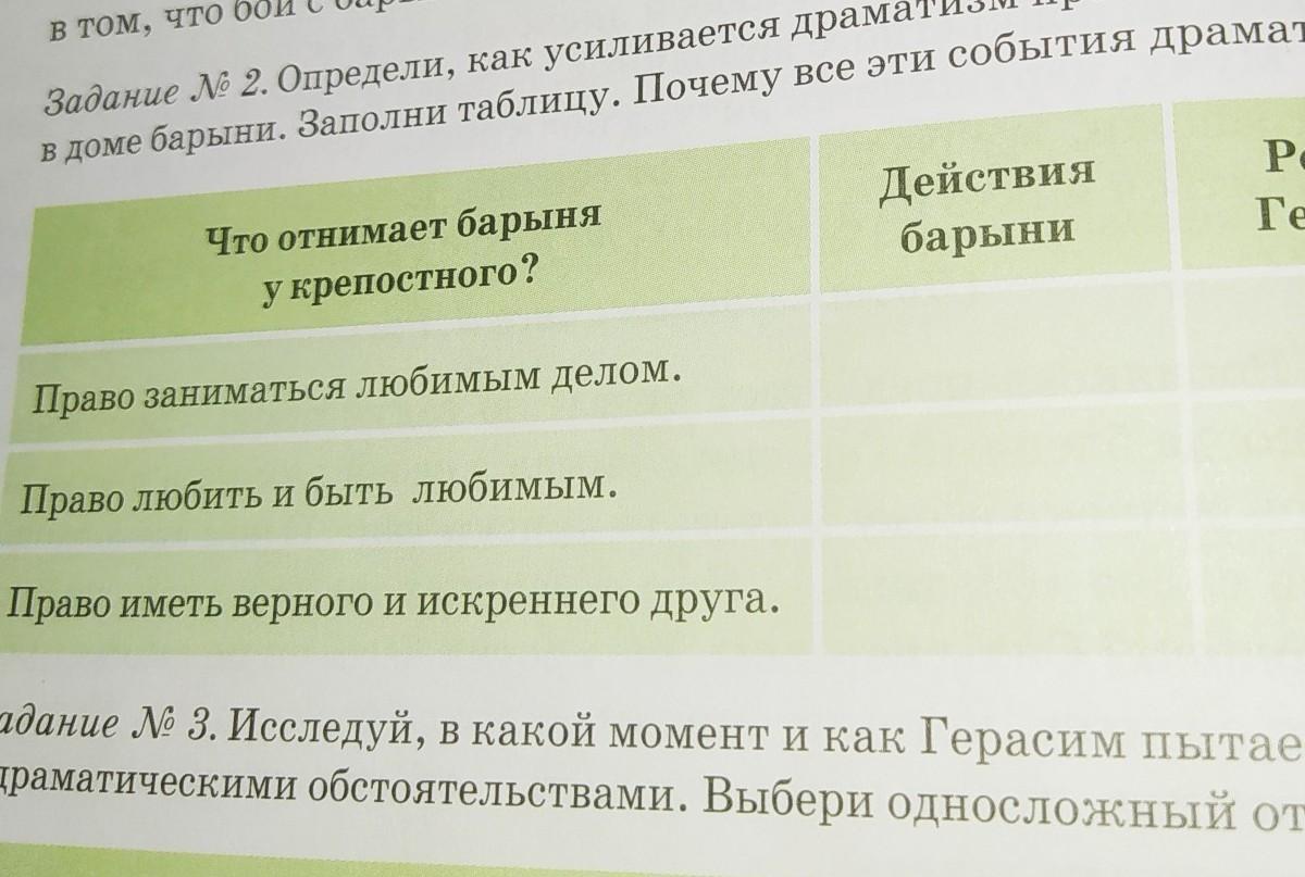 Барыня отнимает у крепостного(Герасима) право иметь верного и искреннего друга. Барыня сначала полюбила Муму, но потом злилась на нее, и вовсе приказала убить ее, так как она ей "мешала".