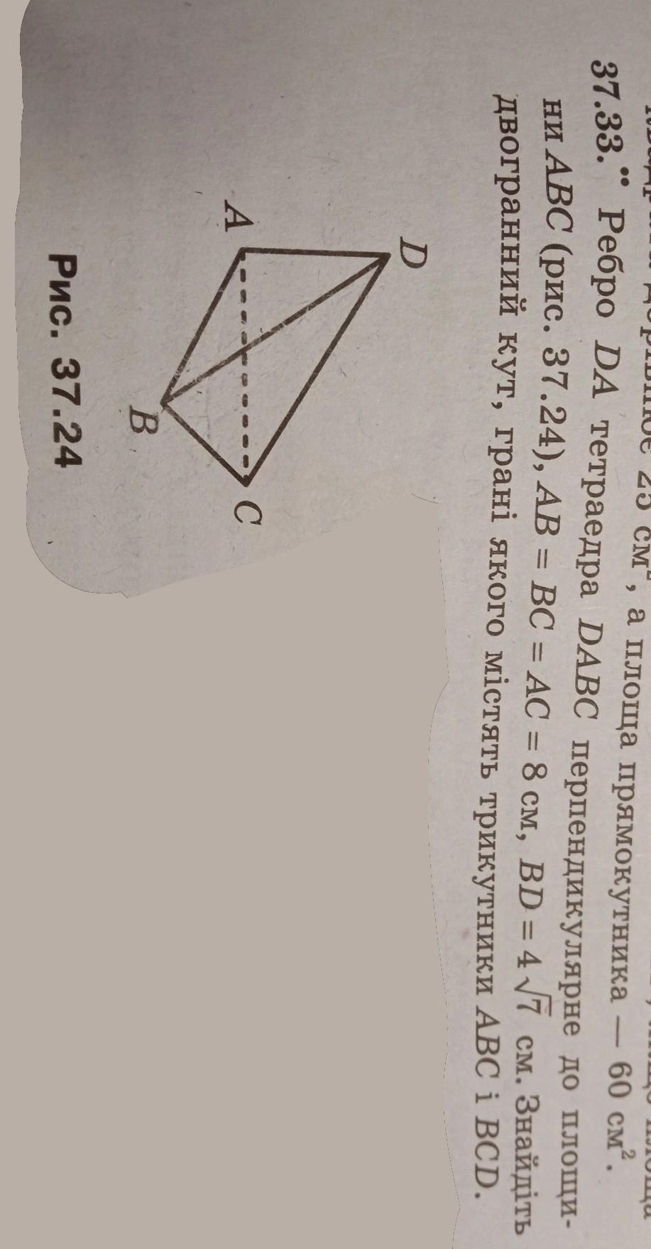 Пошаговое объяснение: проведем 2 высоты: ДН в ΔВСД и АН в ΔАВС, и получим искомый двухгранный ∠АНД (отмечен на рисунке фиолетовым цветом). ΔАВС - равносторонний, поэтому высота АН будет также и медианой, которая делит сторону ВС пополам, поэтому ВН=НС=8:2=4см. ΔВСД - равнобедренный с основанием ВС (так как с равносторонним треугольником АВС у них совпадают вершины А и Д, и АВ=АС, то ВД=СД). В равнобедренном треугольнике высота, проведенная к основанию также является медианой, поэтому высота ДН тоже делит ВС пополам в точке Н. В данном случае основания высот обоих треугольников совпадают в одной точке Н. Найдем высоту АН в ΔАВС по формуле: