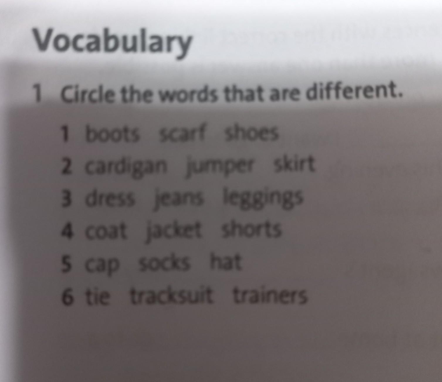 2 skirt 3 dress 4 shorts 5 socks 6 tie