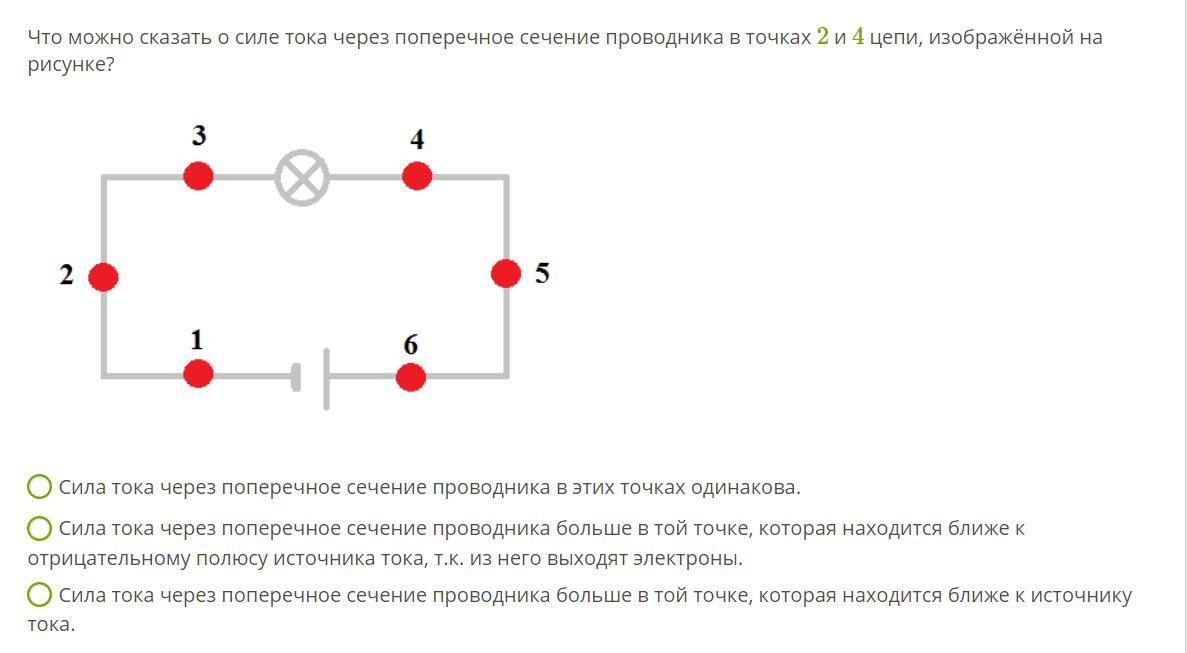 Сила тока через поперечное сечение проводника в этих точках одинакова.