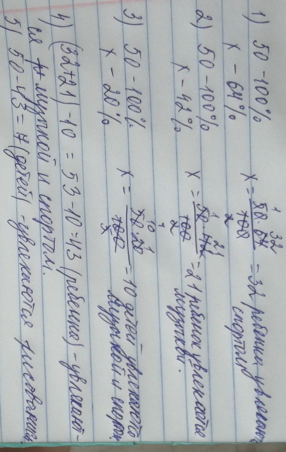 в большом доме живут 50 детей. Из них 64% увлекаются спор-