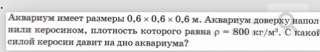 Ответ:Ответ: 4,8кПа. Объяснение: Дано: а=0,6м в=0,6м h=0,6м ρ=800кг/м³ Р-? И Согласно уравнение Бернулли давление на дно аквариума равно: P=ρgh=800*10*0,6=4800Па=4,8кПа Объяснение: