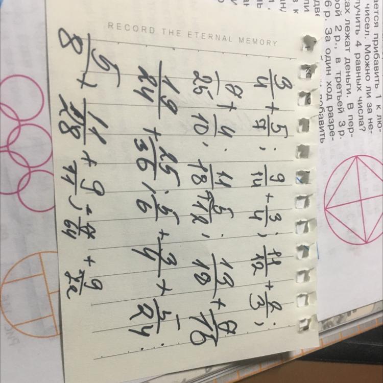 3/4 + 5/7 = 21/28 + 20/28 = 41/28 = 1 13/28 (одна целая тринадцать двадцать восьмых)