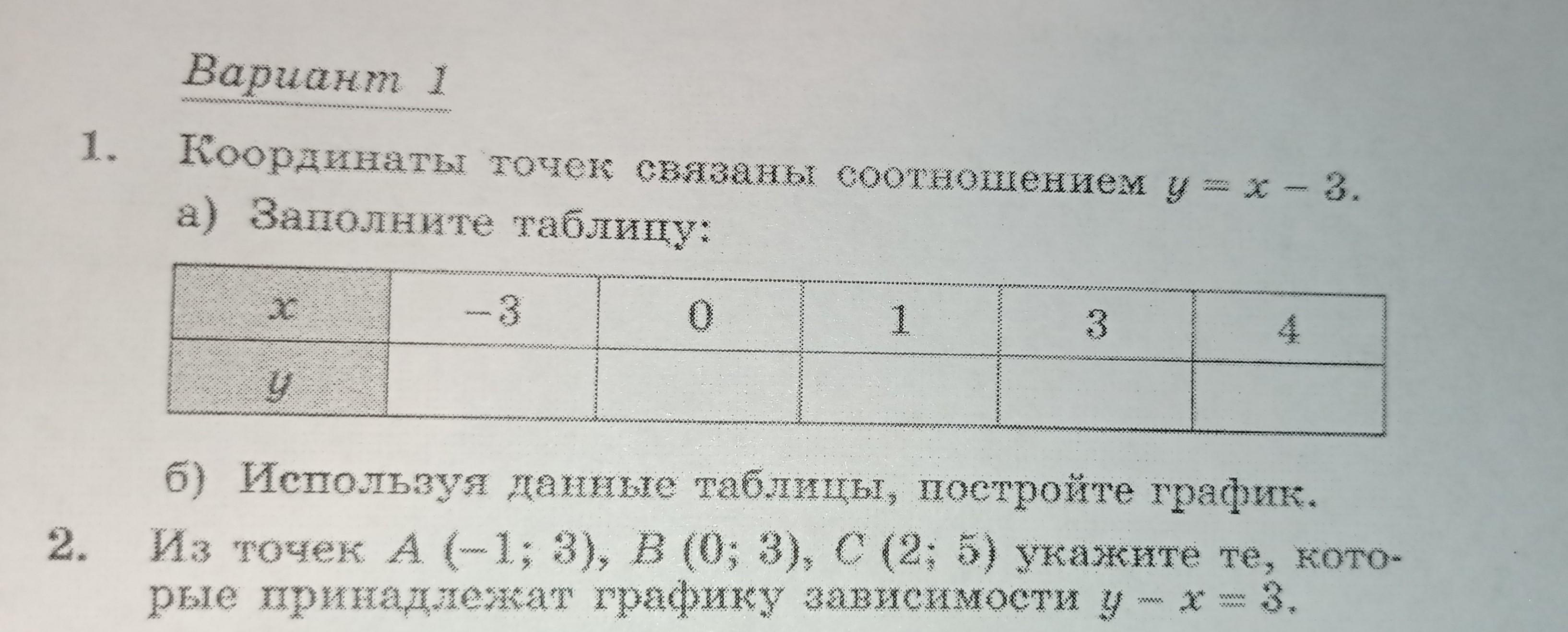Графику зависимости у-х=3 принадлежат точки В(0, 3) и С(2, 5)
