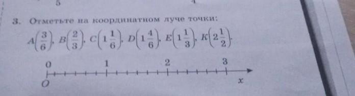 Это легко. Например дробь . Представьте, что у вас есть торт. Его разделили на 6 частей, 3 части забрали. Т.е. делите координатную прямую на 6 единичных отрезков и просто отсчитываете 3. Это и будет нужная дробь.