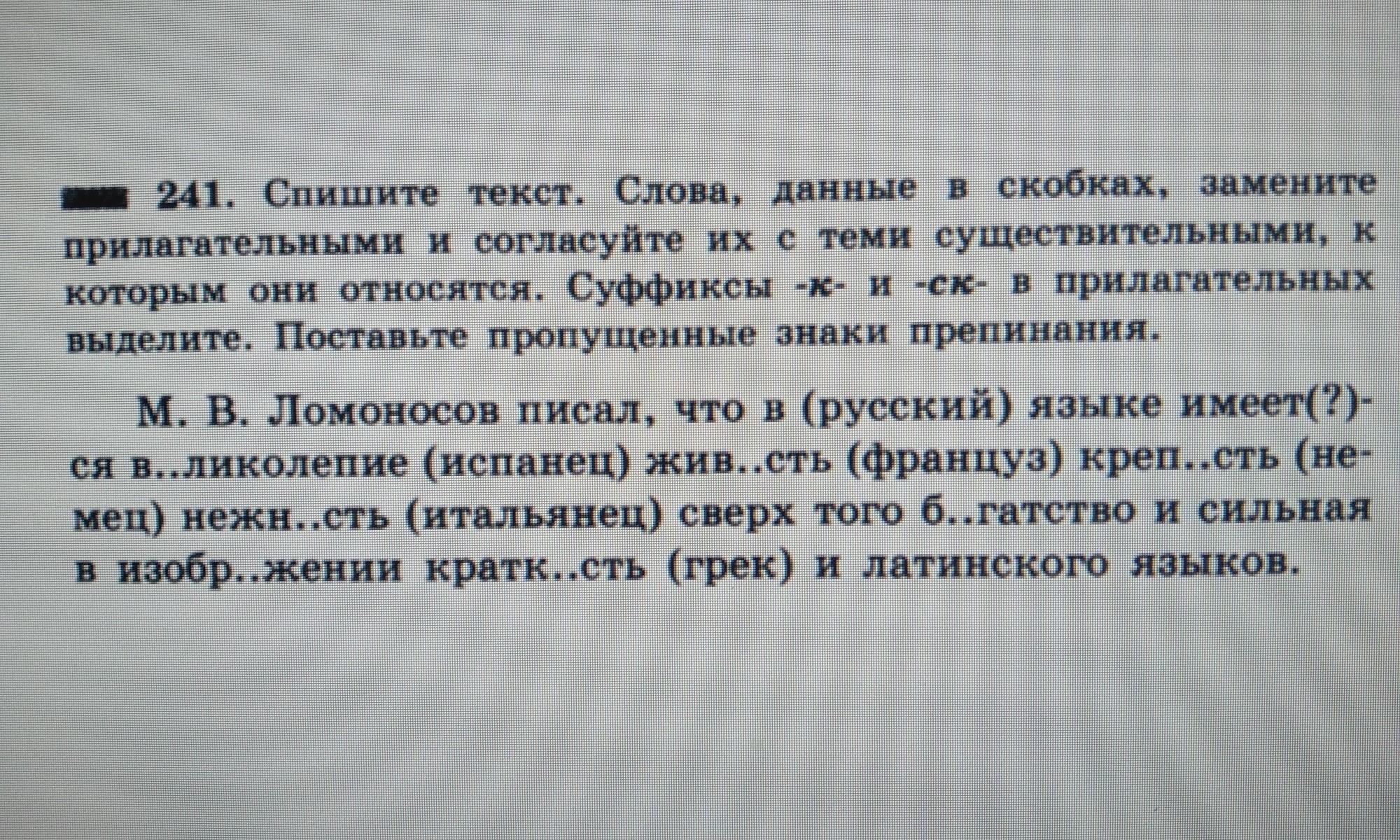 М.В. Ломоносов писал, что в русском языке имеется великолепие, испанская живость, французкая крепость, немецкая нежность, итальянское сверх того богатство и сильная в изображении краткость (сори, не знаю) и латинского языков