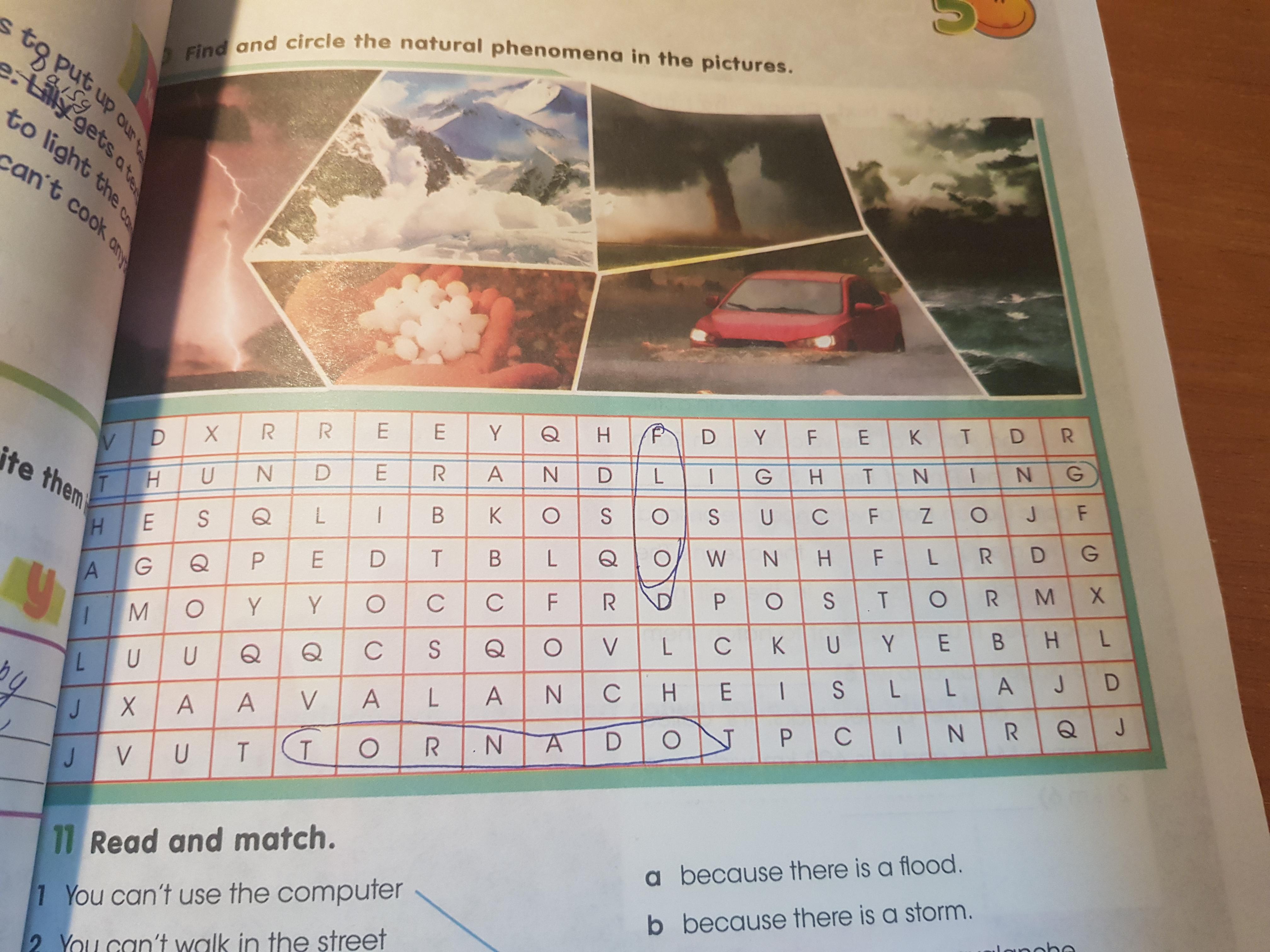 tornado, thunder, lightning, flood, storm, avalanche, hail.