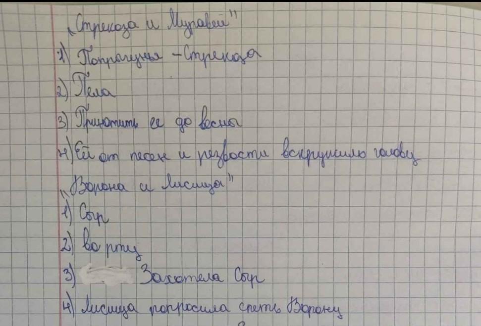 – Что ответил Муравей на просьбу кумушки? ______________________________________________________