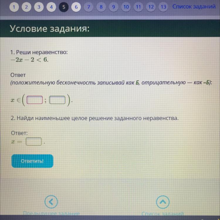 2. Найди наименьшее целое решение заданного неравенства.