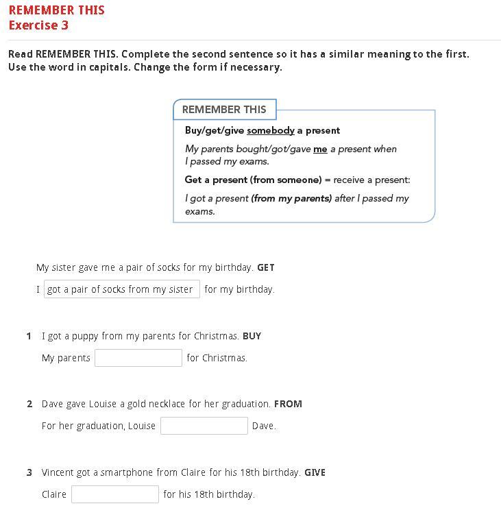 3)Claire gave a smartphone to Vincent for his 18th birthday