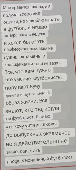LIFE TASK XX You want to prepare a video message or write an email to tell Eddie what you think about his plans. Work in a group. Follow this plan: 1 Say hello. 2 Give constructive comments about his idea to become a football player. 3 Give opinions and suggestions about his idea to leave school before doing his exams. 4 Make any other suggestions and comments that can help him. a