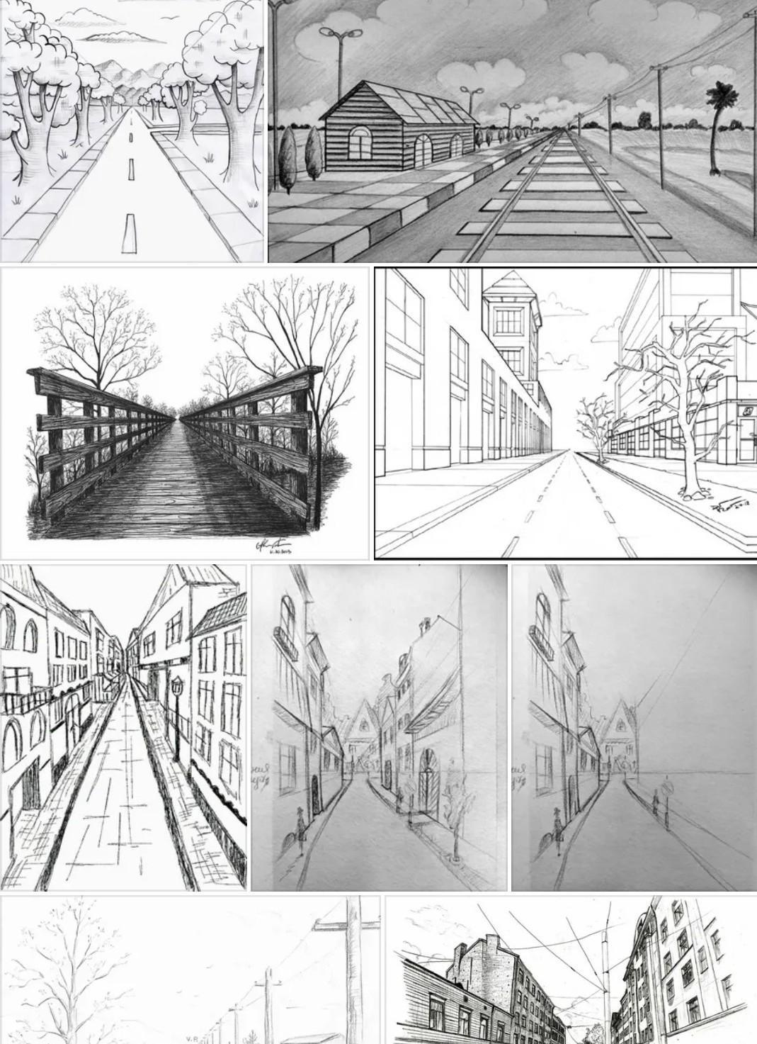 Нарисовать пейзаж линейной перспективы(БРАТЬ НЕ В ИНТЕРНЕТЕ)