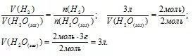 2. Считая, что вся вода находится в газообразном состоянии при тех же условиях, что и исходные газы, находим ее объем.