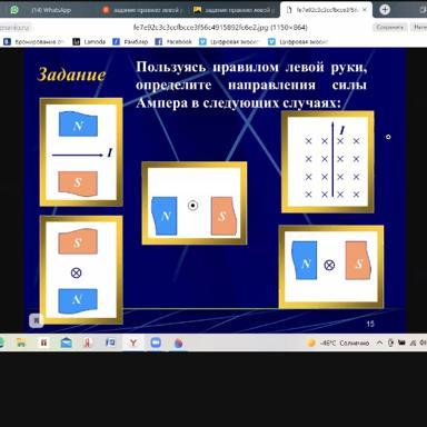 пользуясь правилом левой руки направление силы ампера в следующих случаях даю 100 баллов пожалуйста помогите решить