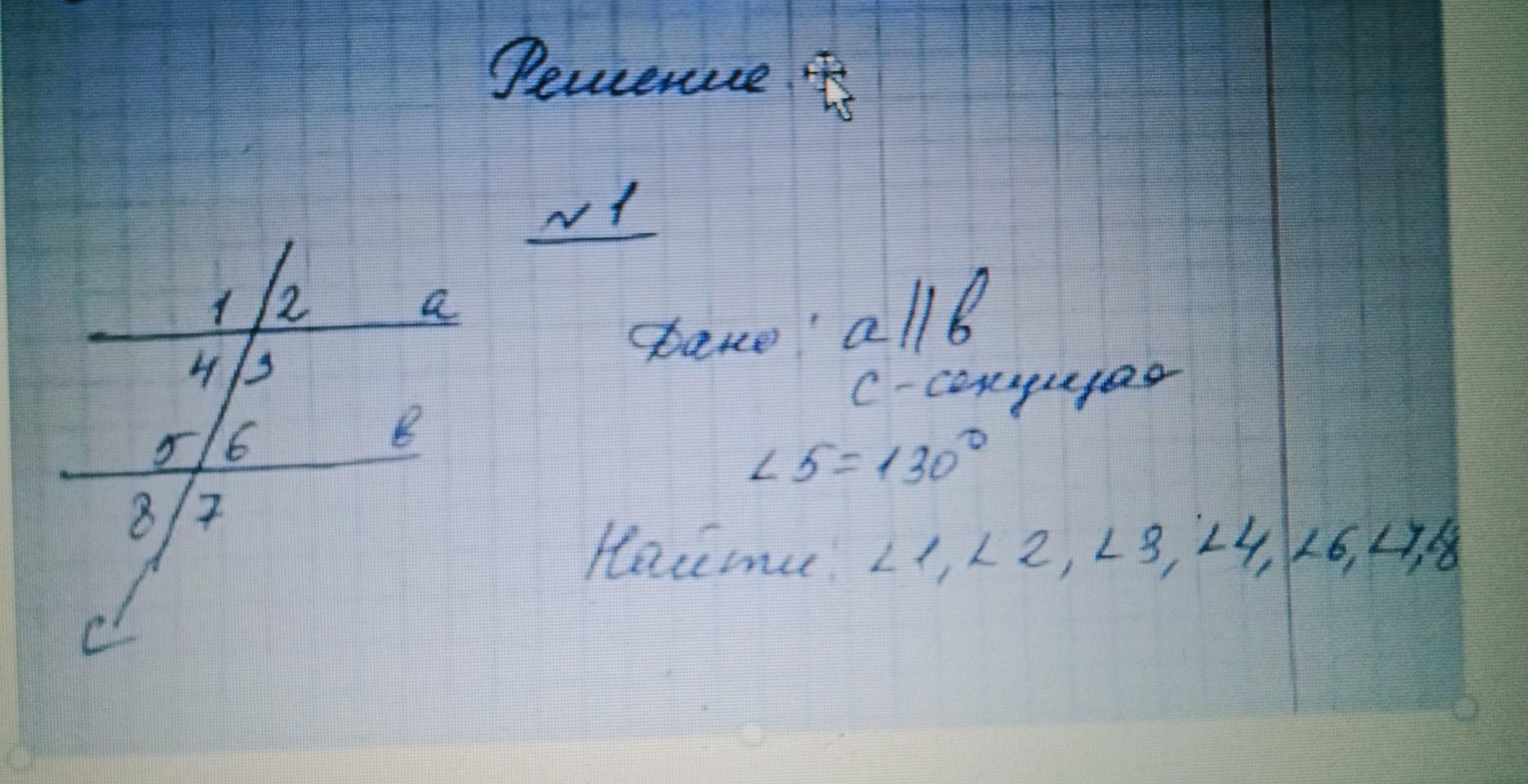 углы 1 и 2 соответственные с углами 5 и 6, ну или вертикальные с углами 3 и 4, равны угол 1 -130, а угол 2-50
