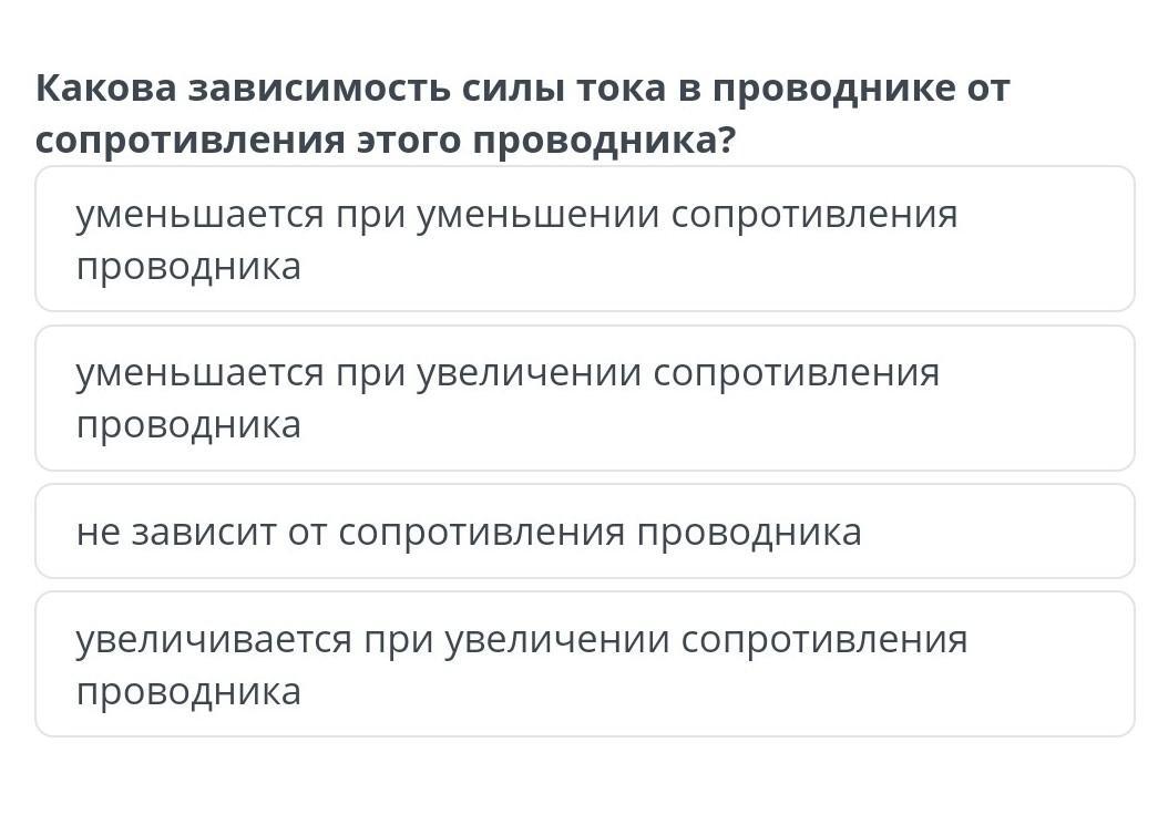Сила тока в проводнике уменьшается при увеличении сопротивления проводника.