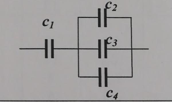 Конденсатор C₁ последовательно присоединён к батарее из конденсаторов С₂, С₃ и С₄.