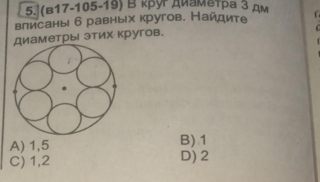 Круг диаметра 3 дм вписана 6 равных кругов. Найдите диаметр этих кругов.