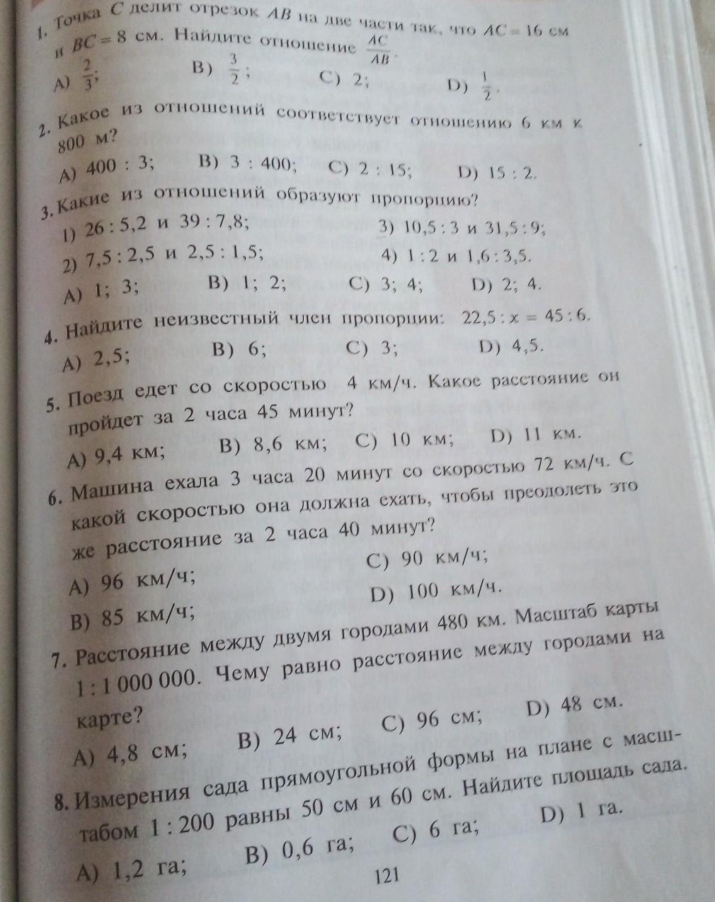 1 А 2) С 3 Д 4 А 5 А 6 Д 7 С 8 В