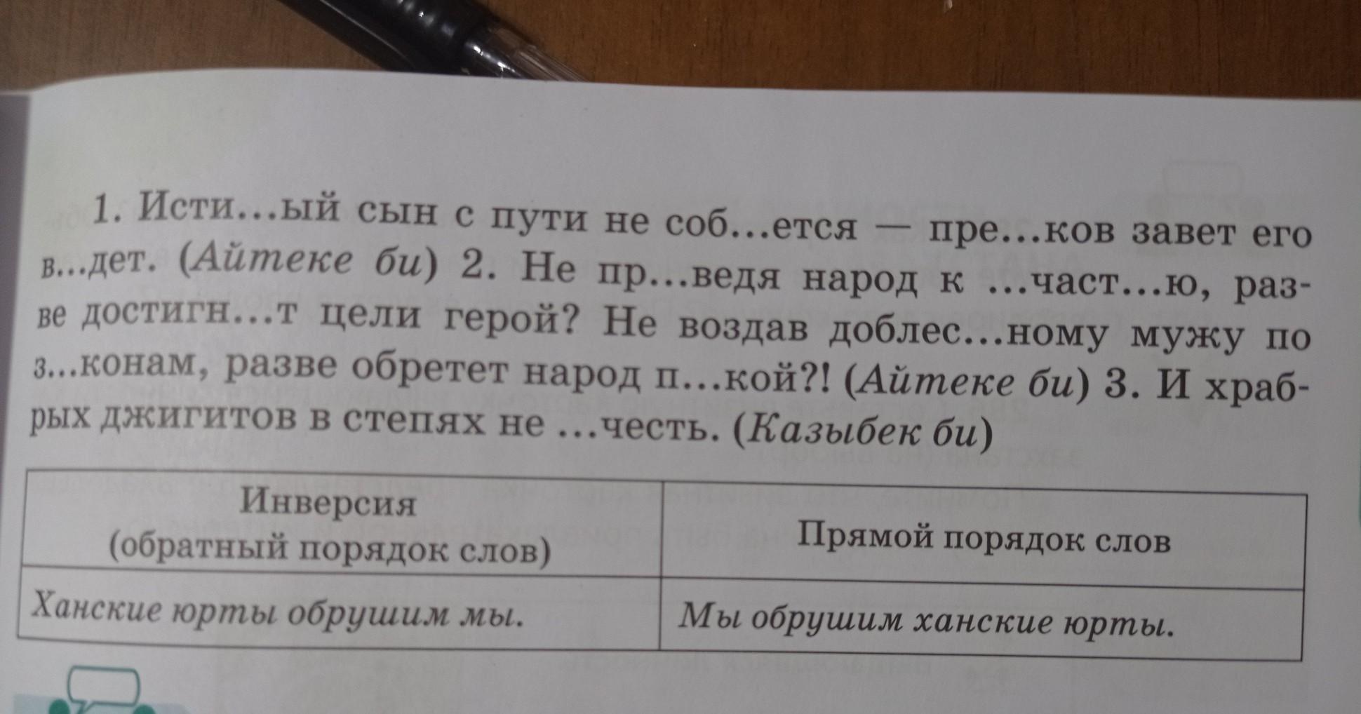 1. Истинный сын с пути не собьётся - предков завет его ведёт. 2. Не проведя народ к несчастью, разве достигнет цели герой? Не воздав доблестному мужу по законам, разве обретёт народ покой?! 3. И храбрых джигитов в степях не счесть.