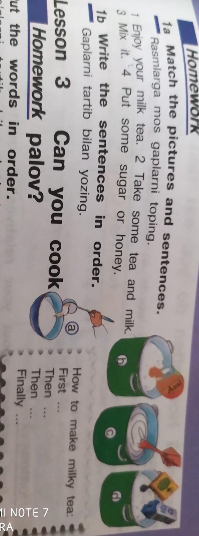 1) Enjoy your milk tea. 2) Take some tea and milk. 3) Mix it. 4) Put some sugar or honey.