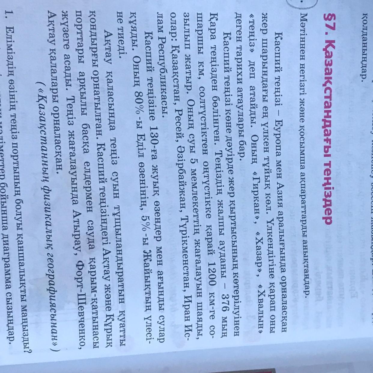 Негізгі :Каспий теңізі -Еуропа мен Азия араоығында орналаскан ең үлкен тұйық көл