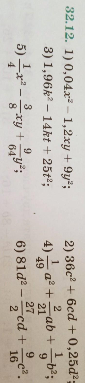 Представьте в виде квадрата двучлена трехчлены. (32.12)
