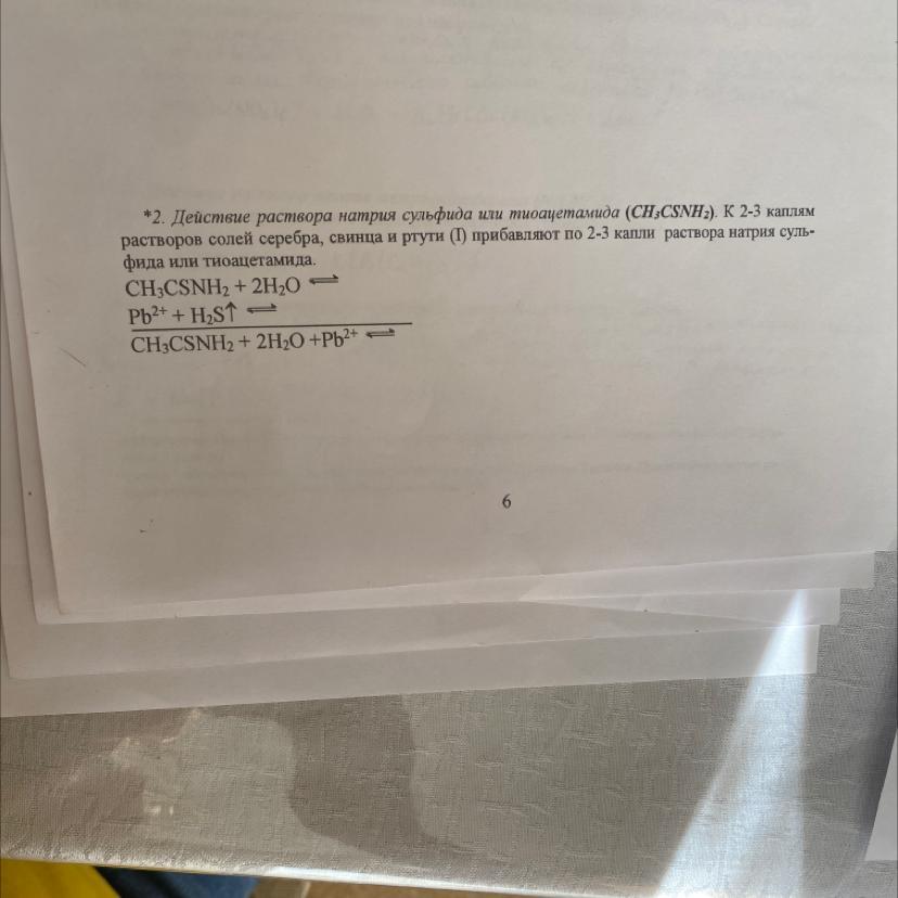 CH₃CSNH₂ + 2H₂O + Pb²⁺ ⇄ CH₃COOH + NH₃↑ + PbS↓ + 2H⁺